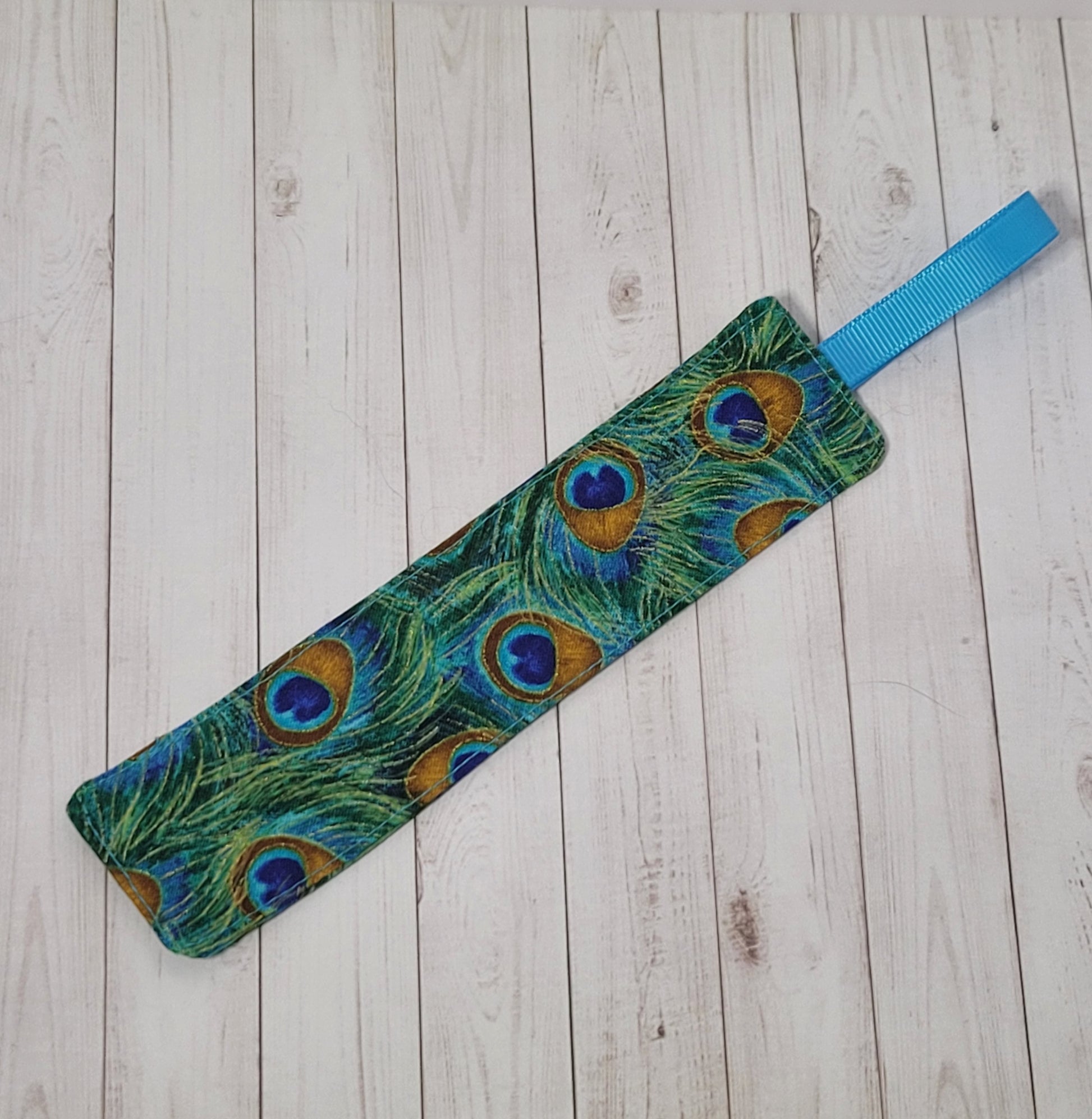 While paper bookmarks can be utterly beautiful, fabric bookmarks are a new addition that can be machine washable should something spill on them while reading your favorite book. Take flight with this beautiful peacock feather print lined with gold shimmer delicately throughout.