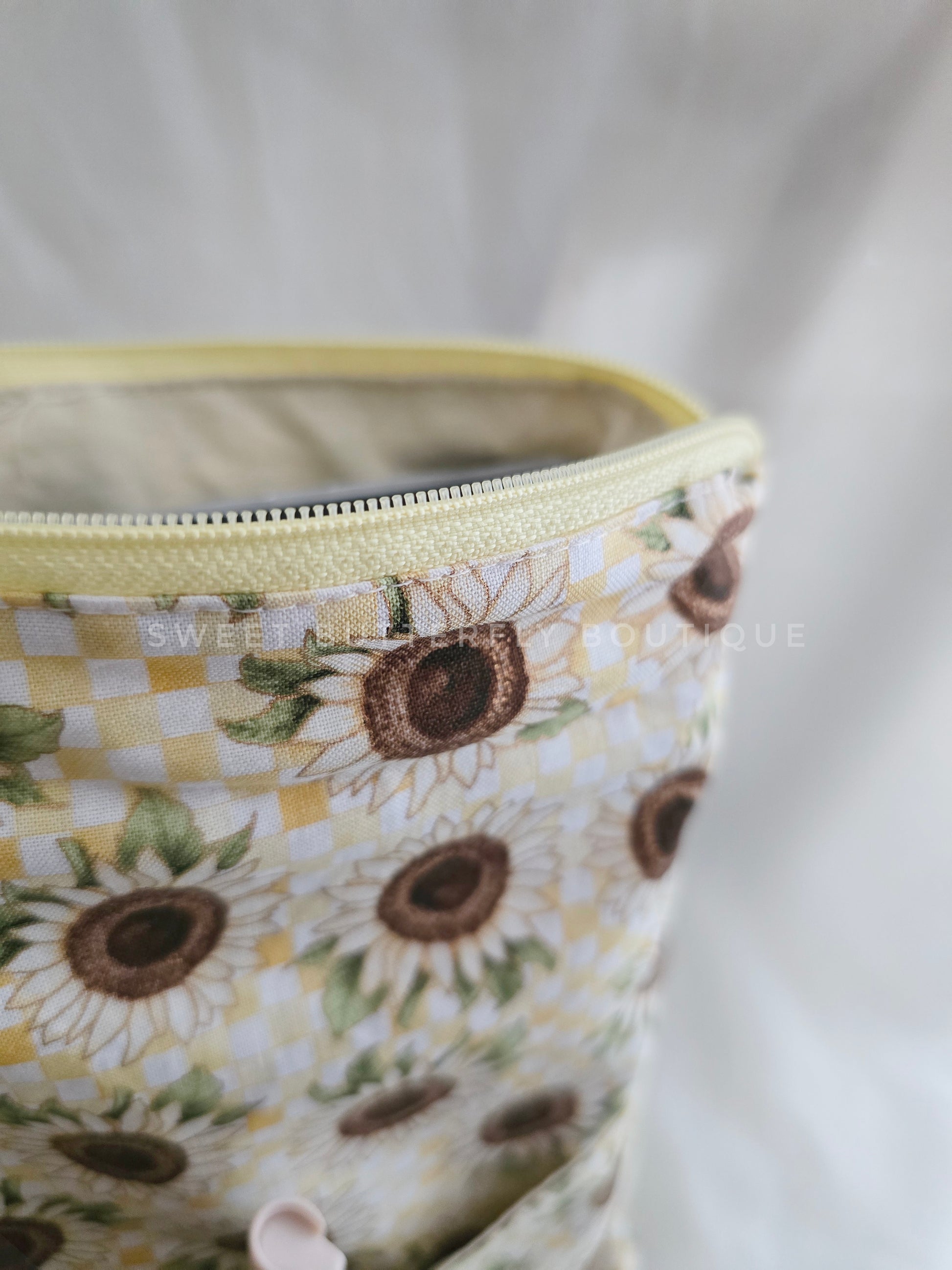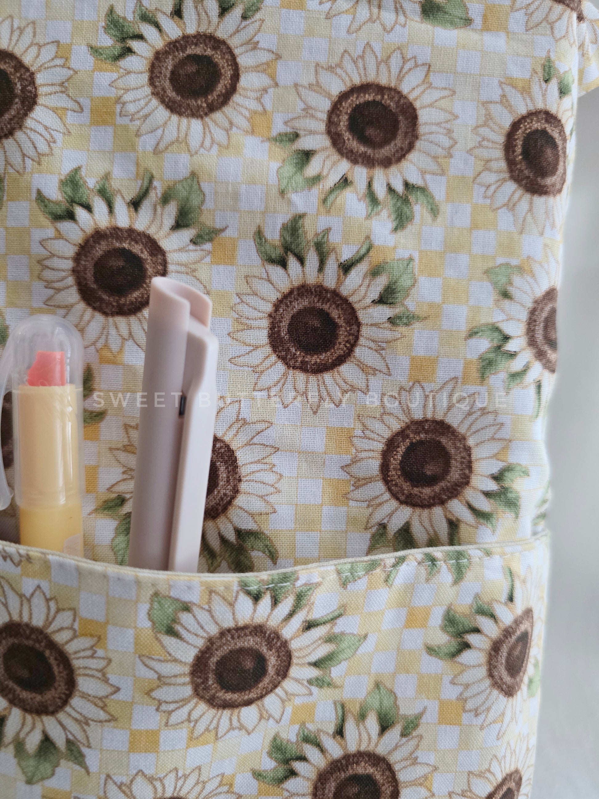 Sunflowers don't always have to be big and bold. Soft yellow and cream make a smooth relaxing version in this fall book sleeve.